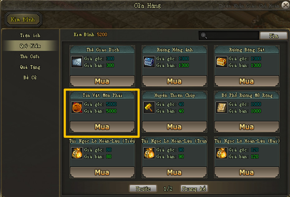 - Có sở hữu 1 Tín Vật Môn Phái (mua tại Cửa Hàng, giá 5000 Kim Đĩnh)