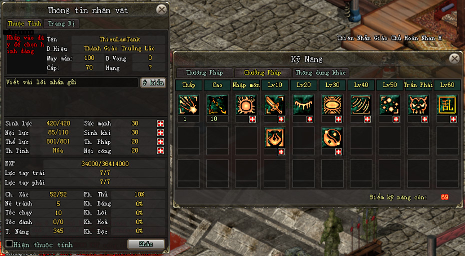 - Lưu ý: Nhân vật nam không thể chuyển sang các môn phái nữ (Thúy Yên, Nga Mi) và ngược lại (Thiếu Lâm, Thiên Vương).