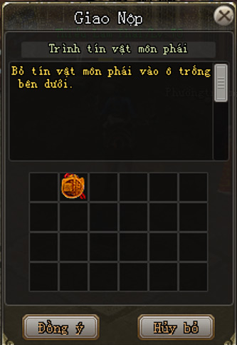 - Nộp Tín Vật Môn Phái vào khung.