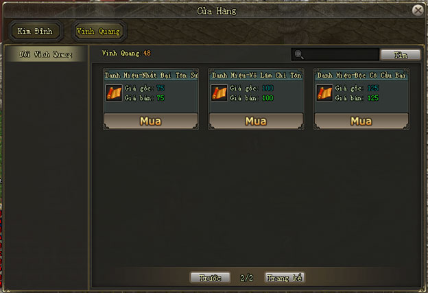| 2 | Danh hiệu - Tuyệt Thế Cao Thủ |