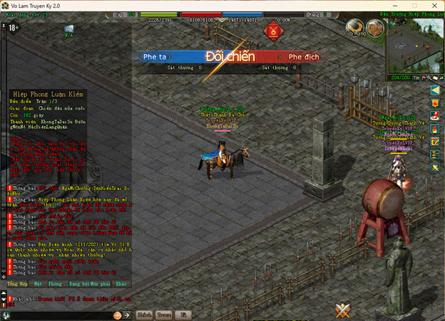 - Các nhân sĩ tổ đội 3 thành viên và thi đấu với nhau trong lôi đài Hiệp Phong Luận Kiếm. Các nhân sĩ cá nhân sẽ được hệ thống tự động ghép đội 3 thành viên để tham gia.