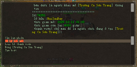 Đáp: Có thể, nhưng có người khác muốn xin vào hoặc TCST này đã đủ người thì không thể xin vào được. Nếu người mở không có ở trong sơn trang thì cũng không thể nhận được lời xin vào.